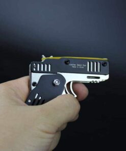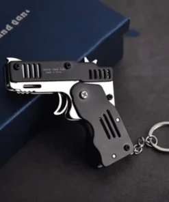 Le porte-clés jouet pistolet à bande de caoutchouc pliable tout en métal présente les caractéristiques du produit suivantes :