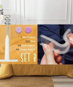 Set C – 1 poussoir à broches + 300 broches + 12 patchs souples + 12 patchs de couverture + 12 patchs floraux + 1 boîte de rangement