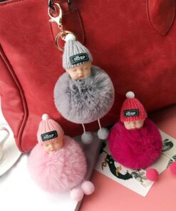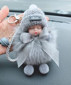 - Matériau : artificielle imitation fourrure de renard/lapin, fleur séchée étoile du ciel, porte-clés en métal, joli bébé en silicone + chapeau en laine