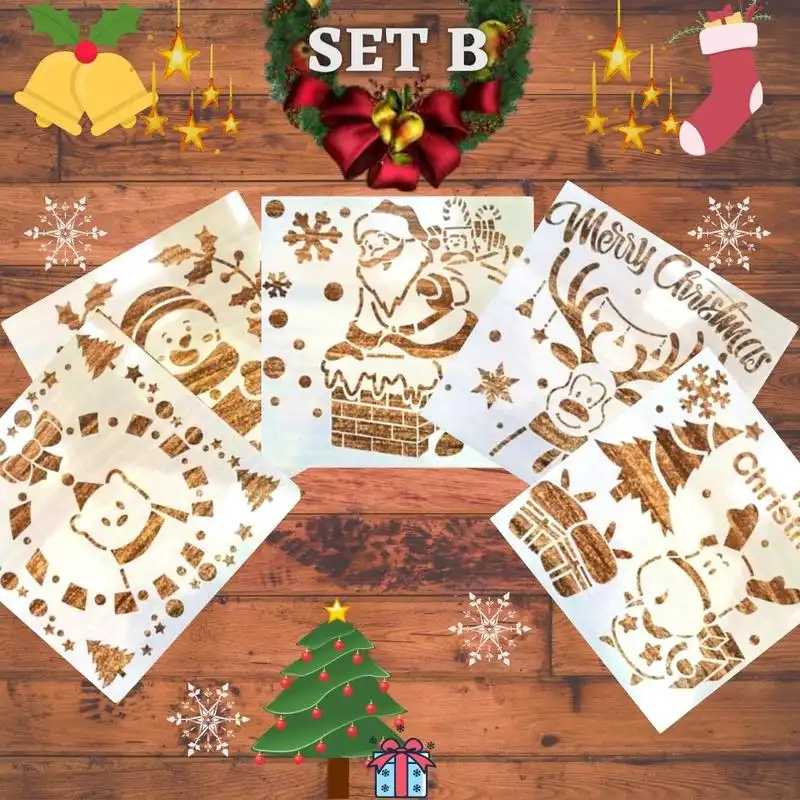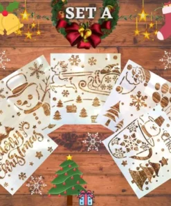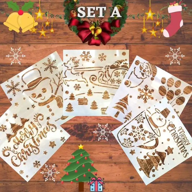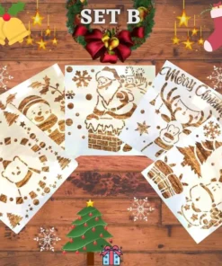 Inclusion(s) du package : 1 ensemble. Pochoir de pulvérisation de neige de Noël InstaDecor (5 pièces)