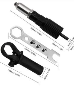 - LE FORFAIT COMPREND : 1* Kit d’adaptateurs pour pistolet à riveter avec 4 pièces (Pistolet à riveter aveugle *1 + poignée *1 + clé*1 + tête de rivet*4