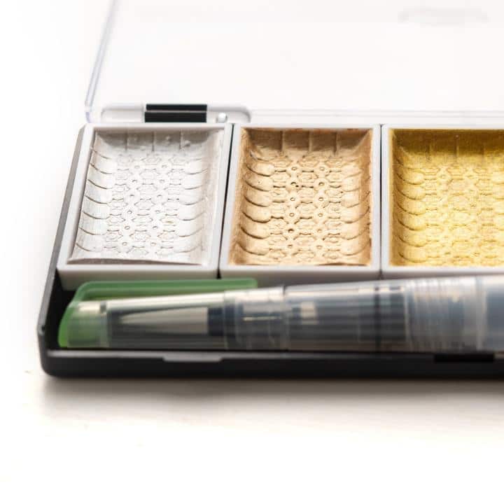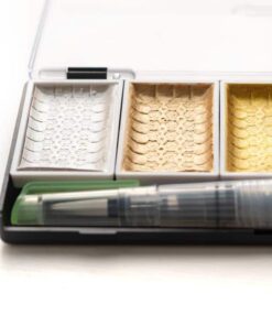 Package : Disponible en ensembles de palettes de 5 et 8 couleurs + pinceau à eau en bonus