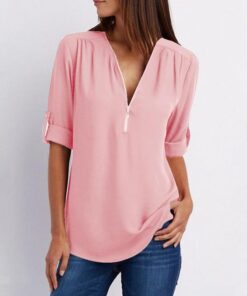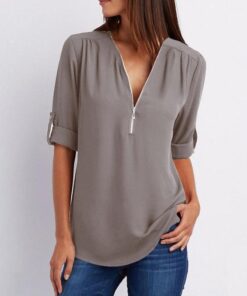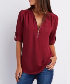 - Nom : Blouses unies en patchwork avec fermeture éclair et col en V