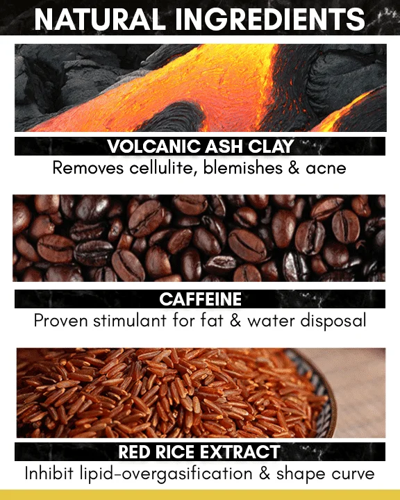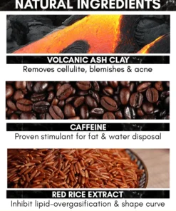 - Ingrédients : argile volcanique, caféine, glycérine, huile d’olive